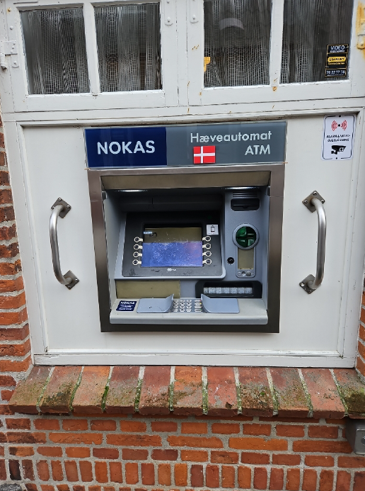Q: Kan jeg hæve penge i EUR fra automaten? A: Det fremgår ikke klart, om hæveautomaten accepterer EUR, så det anbefales at bruge DKK. Q: Er der en beløbsgrænse for hævninger? A: Ja, det er muligt, at der er en beløbsgrænse på 2000 kr. pr. hævning, men dette bør bekræftes ved automaten. Q: Hvordan er sikkerheden ved hæveautomaten? A: Automaten er placeret i et område med overvågning, hvilket bidrager til en sikker hæveoplevelse.
